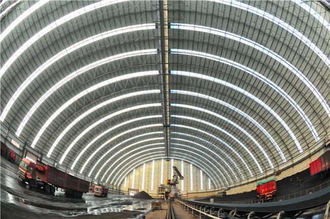 堆场料场封闭式主体结构为新型的钢浏阳网架结构,维修结构为浏阳钢结构浏阳不锈钢板和纤维增强塑料灯具,其外形以浏阳网架式和平板为主,连接柱浏阳施工自由,设置喷雾自动喷水系统,从而可以实现棚内所有物料的覆盖,减少物料在运输过程中的损耗,起到防尘的作用,减少工厂关闭后的二氧化硫排放量,50mg/m3颗粒排放量小于10mg/m3,非常适合低能耗。低闭库自动感应反应对库存轮胎进行清洁,确保轮胎不受道路污染;封闭的储存区可从源头控制粉尘污染,控制无序排放。